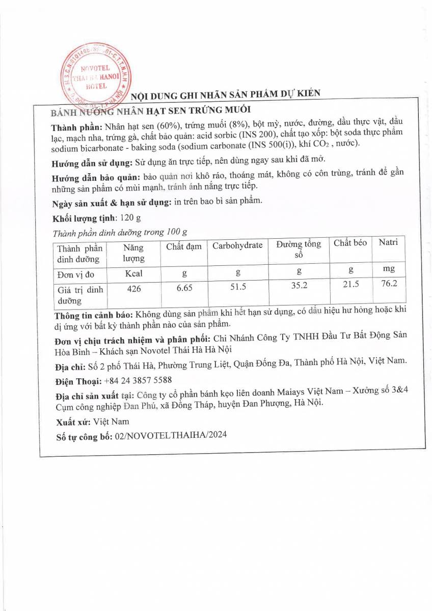 Novotel Hanoi Thai Ha - Family & Business trip hotel - Food Hygiene Certificate